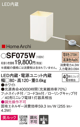Panasonic ¥¹¥¿¥ó¥É SF075W