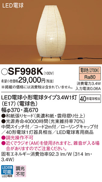 Panasonic LED ¥¹¥¿¥ó¥É SF998K