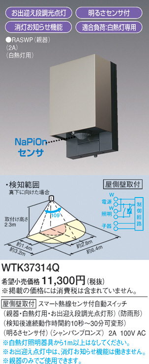 Panasonic ¥¹¥Þ¡¼¥ÈÇ®Àþ¥»¥ó¥µÉÕ¼«Æ°¥¹¥¤¥Ã¥Á(²°Â¦ÊɼèÉÕ·Á) WTK37314Q