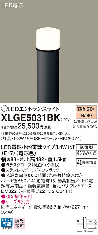 Panasonic LED ¥¨¥¯¥¹¥Æ¥ê¥¢¡¦¥¢¥¦¥È¥É¥¢ XLGE5031BK