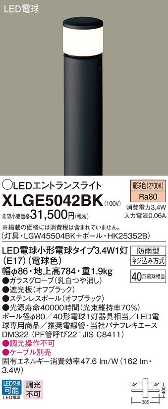Panasonic LED ¥¨¥¯¥¹¥Æ¥ê¥¢¡¦¥¢¥¦¥È¥É¥¢ XLGE5042BK