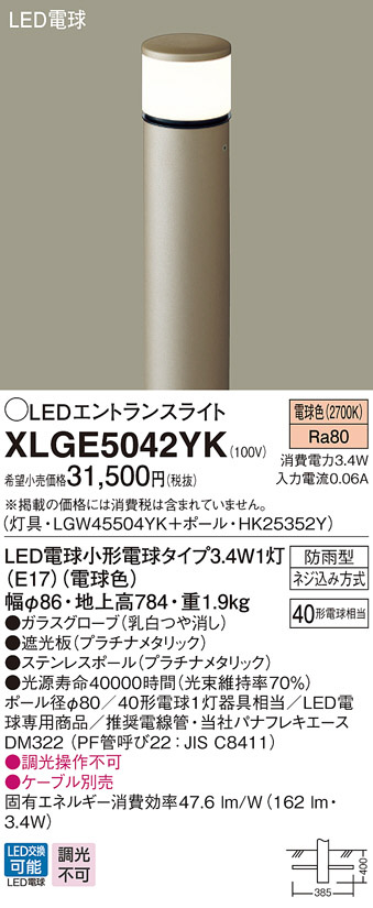 Panasonic LED ¥¨¥¯¥¹¥Æ¥ê¥¢¡¦¥¢¥¦¥È¥É¥¢ XLGE5042YK
