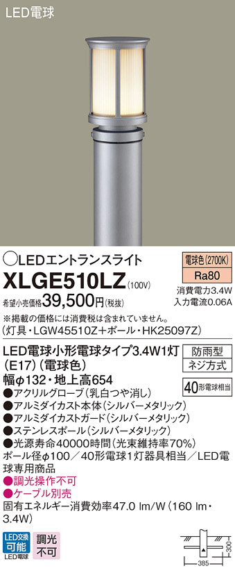 Panasonic LED ¥¨¥¯¥¹¥Æ¥ê¥¢¡¦¥¢¥¦¥È¥É¥¢ XLGE510LZ