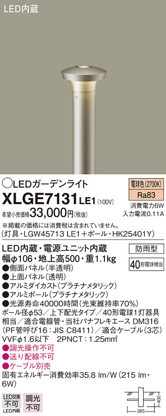 Panasonic ¥¨¥¯¥¹¥Æ¥ê¥¢¥é¥¤¥È XLGE7131LE1