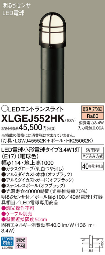 Panasonic LED ¥¨¥¯¥¹¥Æ¥ê¥¢¡¦¥¢¥¦¥È¥É¥¢ XLGEJ552HK