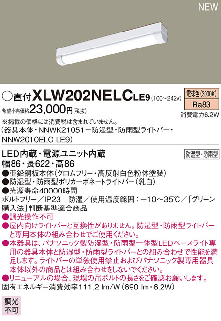 PANASONIC ¥Ñ¥Ê¥½¥Ë¥Ã¥¯ ¥¨¥¯¥¹¥Æ¥ê¥¢¡¦¥¢¥¦¥È¥É¥¢ XLW202NELCLE9
