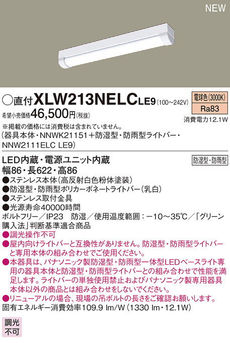 PANASONIC ¥Ñ¥Ê¥½¥Ë¥Ã¥¯ ¥¨¥¯¥¹¥Æ¥ê¥¢¡¦¥¢¥¦¥È¥É¥¢ XLW213NELCLE9