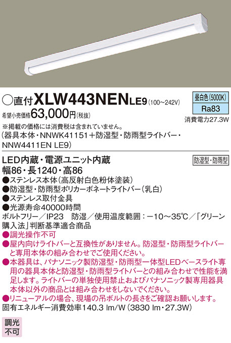 PANASONIC ¥Ñ¥Ê¥½¥Ë¥Ã¥¯ ¥¨¥¯¥¹¥Æ¥ê¥¢¡¦¥¢¥¦¥È¥É¥¢ XLW443NENLE9