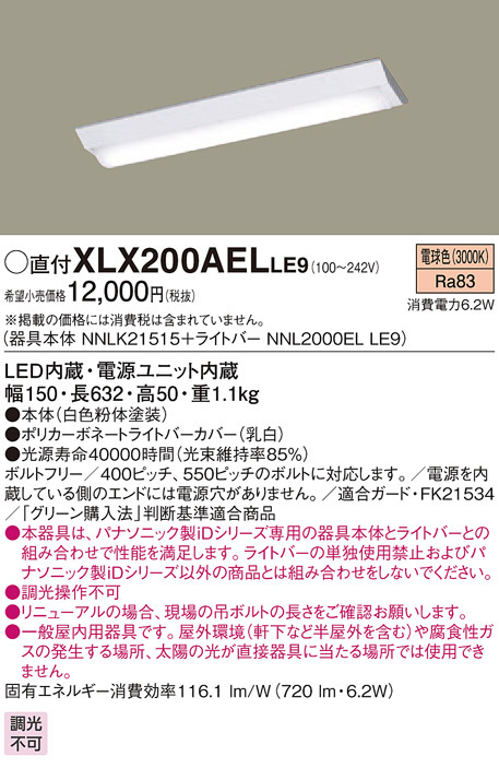 Panasonic ¥Ù¡¼¥¹¥é¥¤¥È XLX200AELLE9