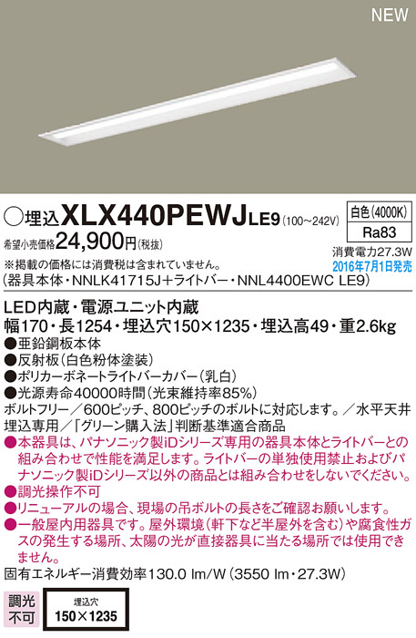 PANASONIC ¥Ñ¥Ê¥½¥Ë¥Ã¥¯ ¥·¡¼¥ê¥ó¥°¥é¥¤¥È XLX440PEWJLE9