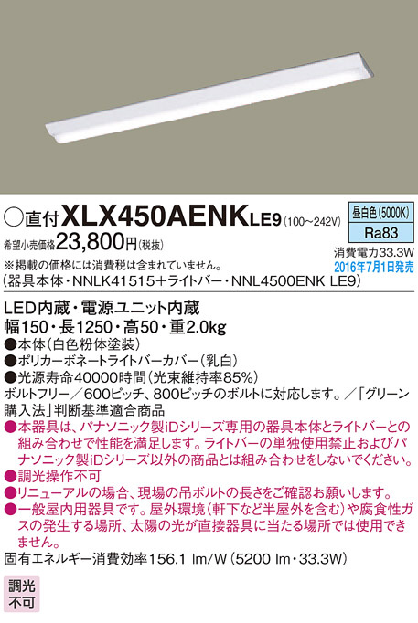 PANASONIC ¥Ñ¥Ê¥½¥Ë¥Ã¥¯ ¥·¡¼¥ê¥ó¥°¥é¥¤¥È XLX450AENKLE9