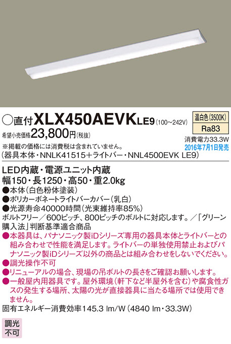 PANASONIC ¥Ñ¥Ê¥½¥Ë¥Ã¥¯ ¥·¡¼¥ê¥ó¥°¥é¥¤¥È XLX450AEVKLE9