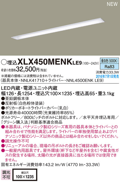 PANASONIC ¥Ñ¥Ê¥½¥Ë¥Ã¥¯ ¥·¡¼¥ê¥ó¥°¥é¥¤¥È XLX450MENKLE9