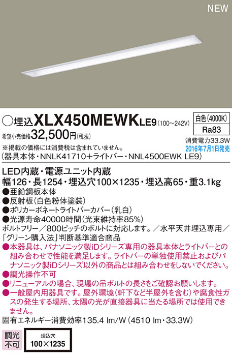 PANASONIC ¥Ñ¥Ê¥½¥Ë¥Ã¥¯ ¥·¡¼¥ê¥ó¥°¥é¥¤¥È XLX450MEWKLE9