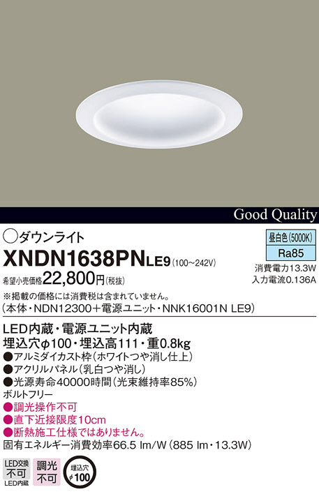 Panasonic LED ¥À¥¦¥ó¥é¥¤¥È XNDN1638PNLE9