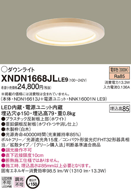PANASONIC ¥Ñ¥Ê¥½¥Ë¥Ã¥¯ ¥À¥¦¥ó¥é¥¤¥È XNDN1668JLLE9
