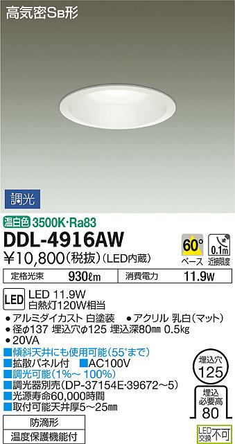 DAIKO Âç¸÷Åŵ¡ ¥À¥¦¥ó¥é¥¤¥È(¸®²¼·óÍÑ) DDL-4916AW