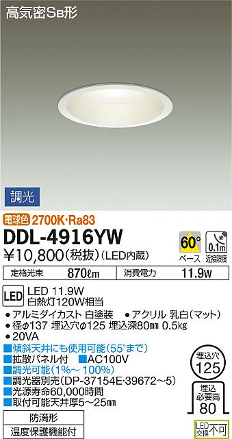 DAIKO Âç¸÷Åŵ¡ ¥À¥¦¥ó¥é¥¤¥È(¸®²¼·óÍÑ) DDL-4916YW