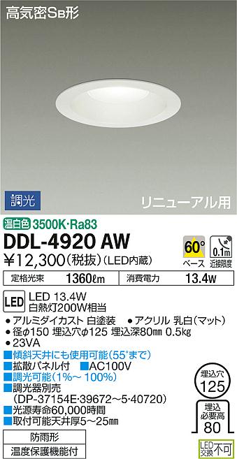 DAIKO Âç¸÷Åŵ¡ ¥À¥¦¥ó¥é¥¤¥È(¸®²¼·óÍÑ) DDL-4920AW