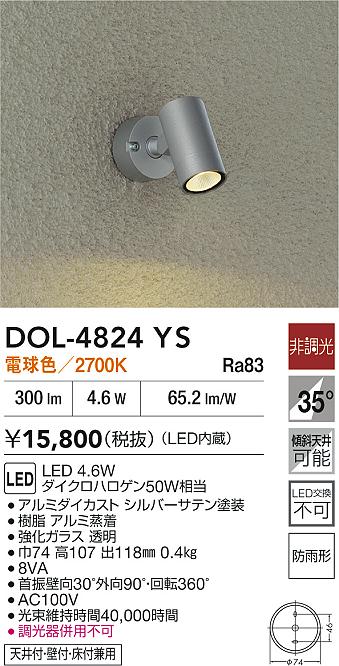 DAIKO Âç¸÷Åŵ¡ ¥¢¥¦¥È¥É¥¢¥¹¥Ý¥Ã¥È DOL-4824YS