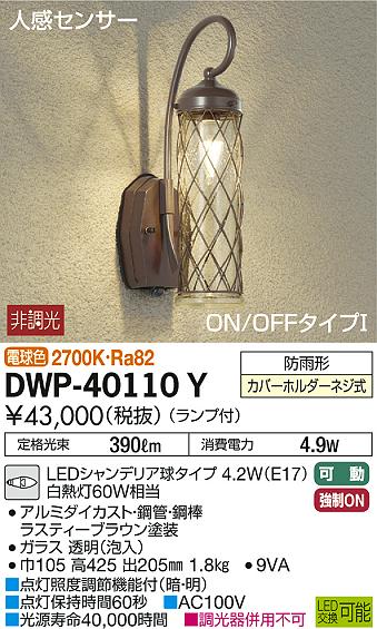 DAIKO Âç¸÷Åŵ¡ ¿Í´¶¥»¥ó¥µ¡¼ÉÕ¥¢¥¦¥È¥É¥¢¥é¥¤¥È DWP-40110Y