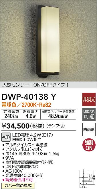 DAIKO Âç¸÷Åŵ¡ ¿Í´¶¥»¥ó¥µ¡¼ÉÕ¥¢¥¦¥È¥É¥¢¥é¥¤¥È DWP-40138Y