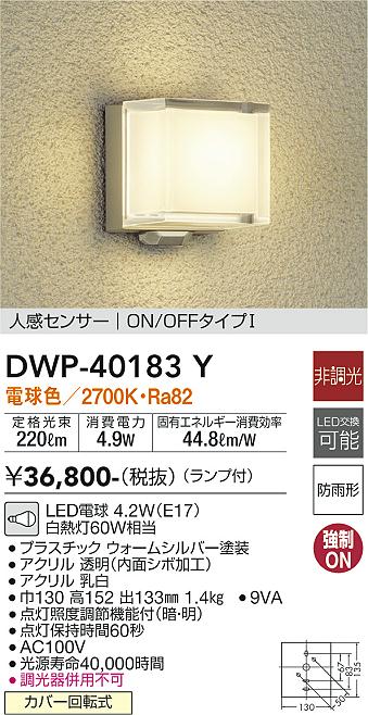 DAIKO Âç¸÷Åŵ¡ ¿Í´¶¥»¥ó¥µ¡¼ÉÕ¥¢¥¦¥È¥É¥¢¥é¥¤¥È DWP-40183Y