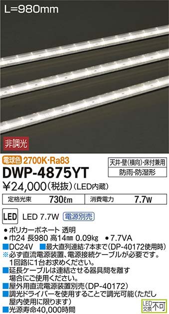 DAIKO Âç¸÷Åŵ¡ LED ¥¢¥¦¥È¥É¥¢¥é¥¤¥ó¾ÈÌÀ DWP-4875YT