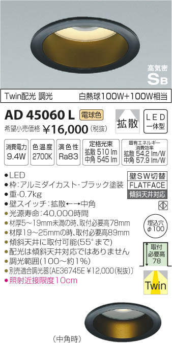 ¥³¥¤¥º¥ß¾ÈÌÀ KOIZUMI LED ¹âµ¤Ì©¥À¥¦¥ó¥é¥¤¥È AD45060L