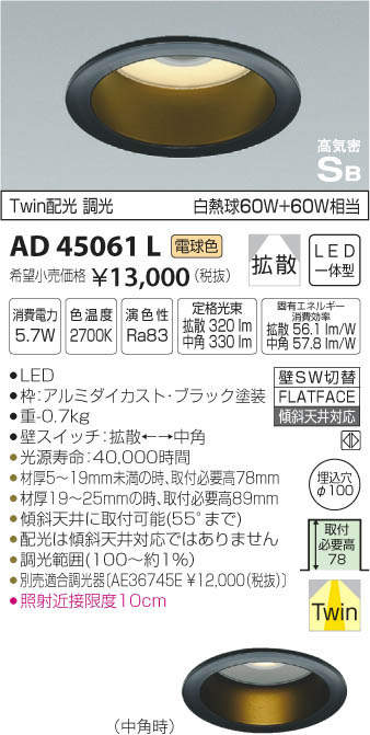 ¥³¥¤¥º¥ß¾ÈÌÀ KOIZUMI LED ¹âµ¤Ì©¥À¥¦¥ó¥é¥¤¥È AD45061L
