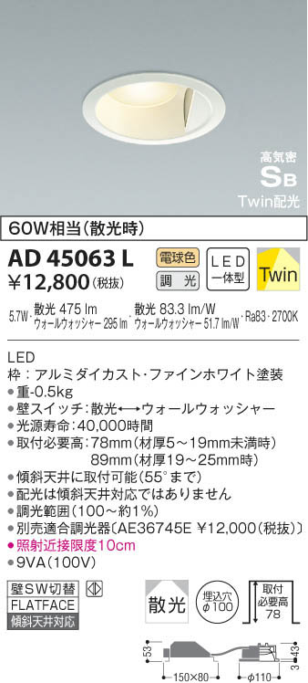 KOIZUMI ¥³¥¤¥º¥ß¾ÈÌÀ ¹âµ¤Ì©¥À¥¦¥ó¥é¥¤¥È AD45063L