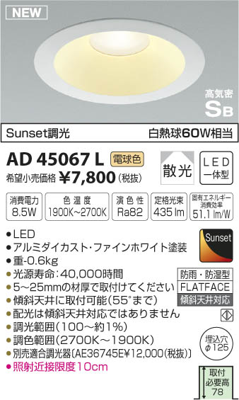 ¥³¥¤¥º¥ß¾ÈÌÀ KOIZUMI ¹âµ¤Ì©¥À¥¦¥ó¥é¥¤¥È LED¡ÊÅŵ忧¡Ë AD45067L