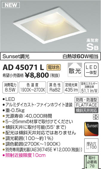 ¥³¥¤¥º¥ß¾ÈÌÀ KOIZUMI ¹âµ¤Ì©¥À¥¦¥ó¥é¥¤¥È LED¡ÊÅŵ忧¡Ë AD45071L