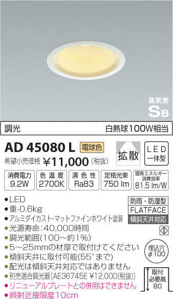 ¥³¥¤¥º¥ß¾ÈÌÀ KOIZUMI ¹âµ¤Ì©¥À¥¦¥ó¥é¥¤¥È AD45080L