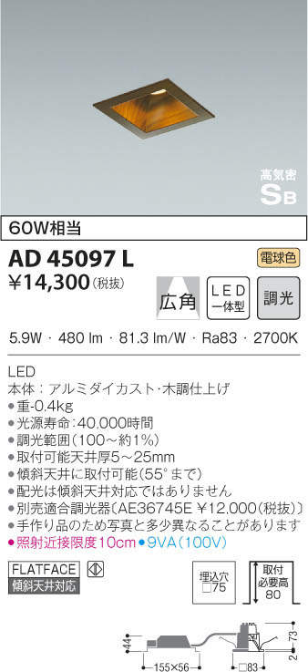 KOIZUMI ¥³¥¤¥º¥ß¾ÈÌÀ ¹âµ¤Ì©¥À¥¦¥ó¥é¥¤¥È AD45097L