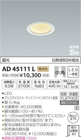 ¥³¥¤¥º¥ß¾ÈÌÀ KOIZUMI ¹âµ¤Ì©¥À¥¦¥ó¥é¥¤¥È AD45111L
