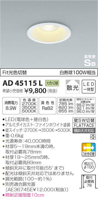 ¥³¥¤¥º¥ß¾ÈÌÀ KOIZUMI ¹âµ¤Ì©¥À¥¦¥ó¥é¥¤¥È AD45115L