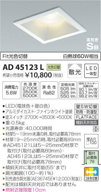 ¥³¥¤¥º¥ß¾ÈÌÀ KOIZUMI LED ¹âµ¤Ì©¥À¥¦¥ó¥é¥¤¥È AD45123L