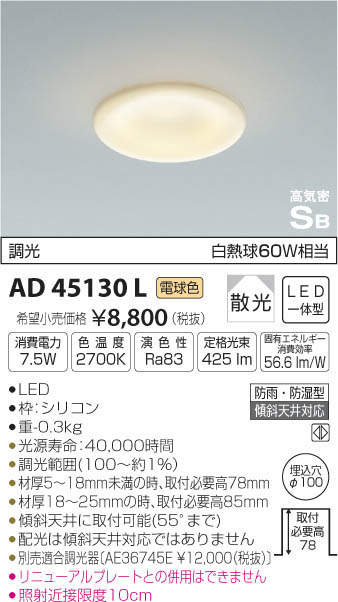 ¥³¥¤¥º¥ß¾ÈÌÀ KOIZUMI ¹âµ¤Ì©¥À¥¦¥ó¥é¥¤¥È AD45130L