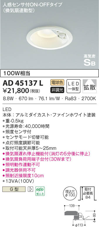 KOIZUMI ¥³¥¤¥º¥ß¾ÈÌÀ ¹âµ¤Ì©¥À¥¦¥ó¥é¥¤¥È AD45137L