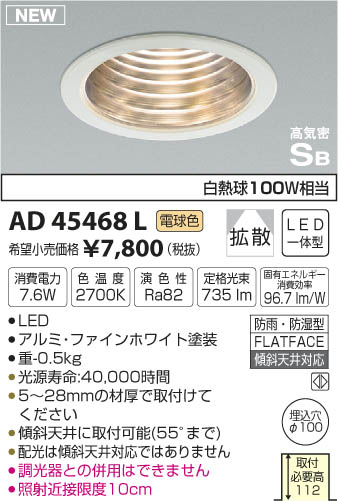 ¥³¥¤¥º¥ß¾ÈÌÀ KOIZUMI ¹âµ¤Ì©¥À¥¦¥ó¥é¥¤¥È LED¡ÊÅŵ忧¡Ë AD45468L