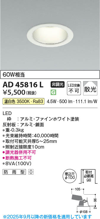 Koizumi ¥³¥¤¥º¥ß¾ÈÌÀ LED¥À¥¦¥ó¥é¥¤¥È AD45816L