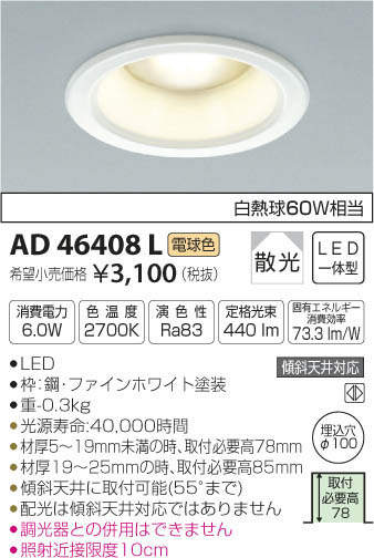 ¥³¥¤¥º¥ß¾ÈÌÀ KOIZUMI LED £Í·Á¥À¥¦¥ó¥é¥¤¥È AD46408L