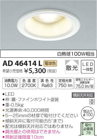 ¥³¥¤¥º¥ß¾ÈÌÀ KOIZUMI LED £Í·Á¥À¥¦¥ó¥é¥¤¥È AD46414L