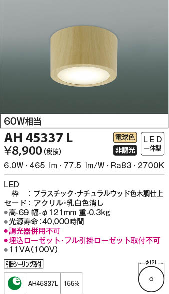 KOIZUMI ¥³¥¤¥º¥ß¾ÈÌÀ ¾®·¿¥·¡¼¥ê¥ó¥° AH45337L