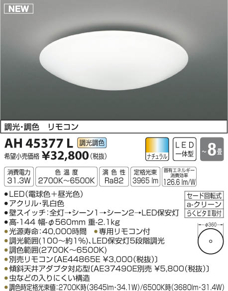 LED31.3W|¡üLED¡ÊÅŵ忧¡ÜÃë¸÷¿§¡Ë|¡ü¥¢¥¯¥ê¥ë¡¦ÆýÇò¿§|¡üÊÉ¥¹¥¤¥Ã¥Á¡§Á´Åô¢ª¥·¡¼¥ó1¢ª¥·¡¼¥ó2¢ªLEDÊݰÂÅô|¡É¡ü¹â-144 Éý-¦Õ560mm ½Å-2.1kg¡É|¡ü¾ÃÈñÅÅÎÏ:31.3W|¡ü¿§²¹ÅÙ:2700K¡Á6500K|¡ü±é¿§À:Ra82|¡É¡üÄê³Ê¸÷«:3¡¤965 lm¡É|¡É¡ü¸ÇÍ¥¨¥Í¥ë¥®¡¼¾ÃÈñ¸úΨ:126.6 lm/W¡É|¡É¡ü¸÷¸»¼÷Ì¿¡§40¡¤000»þ´Ö¡É|¡üÀìÍÑ¥ê¥â¥³¥óÉÕ|¡üÄ´¸÷ÈϰϡÊ100¡ÁÌó1¡ó¡Ë¡¢LEDÊݰÂÅô5Ãʳ¬Ä´¸÷|¡üÄ´¿§ÈϰϡÊ2700K¡Á6500K¡Ë|¡É¡üÊÌÇä¥ê¥â¥³¥ó¡ÌAE44865E ¡ï3¡¤000¡ÊÀÇÈ´¡Ë¡Í¡É|¡É¡ü·¹¼ÐÅ·°æ¥¢¥À¥×¥¿Âбþ·¿¡ÌAE37490EÊÌÇä ¡ï5¡¤800¡ÊÀÇÈ´¡Ë¡Í¡É|¡üÃî¤Ê¤É¤ÎÆþ¤ê¤Ë¤¯¤¤¹½Â¤|¡üÄ´¿§»þÄê³Ê¸÷«ÃÍ¡§2700K»þ¡Ê3645lm¡¦34.1W¡Ë/6500K»þ¡Ê3680lm¡¦31.4W¡Ë ¡Á8¾ö