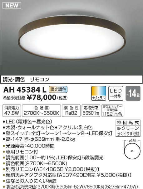 LED47.8W|¡üLED¡ÊÅŵ忧¡ÜÃë¸÷¿§¡Ë|¡üÌÚÀ½¡¦¥¦¥©¡¼¥ë¥Ê¥Ã¥È¿§|¡ü¥¢¥¯¥ê¥ë¡§ÆýÇò¿§|¡üÊÉ¥¹¥¤¥Ã¥Á¡§Á´Åô¢ª¥·¡¼¥ó1¢ª¥·¡¼¥ó2¢ªLEDÊݰÂÅô|¡É¡ü¹â-147 Éý-¦Õ639mm ½Å-2.8kg¡É|¡ü¾ÃÈñÅÅÎÏ:47.8W|¡ü¿§²¹ÅÙ:2700K¡Á6500K|¡ü±é¿§À:Ra82|¡É¡üÄê³Ê¸÷«:5¡¤650 lm¡É|¡É¡ü¸ÇÍ¥¨¥Í¥ë¥®¡¼¾ÃÈñ¸úΨ:118.2 lm/W¡É|¡É¡ü¸÷¸»¼÷Ì¿¡§40¡¤000»þ´Ö¡É|¡üÀìÍÑ¥ê¥â¥³¥óÉÕ|¡üÄ´¸÷ÈϰϡÊ100¡ÁÌó1¡ó¡Ë¡¢LEDÊݰÂÅô5Ãʳ¬Ä´¸÷|¡üÄ´¿§ÈϰϡÊ2700K¡Á6500K¡Ë|¡É¡üÊÌÇä¥ê¥â¥³¥ó¡ÌAE44865E ¡ï3¡¤000¡ÊÀÇÈ´¡Ë¡Í¡É|¡É¡ü·¹¼ÐÅ·°æ¥¢¥À¥×¥¿Âбþ·¿¡ÌAE37490EÊÌÇä ¡ï5¡¤800¡ÊÀÇÈ´¡Ë¡Í¡É|¡üÃî¤Ê¤É¤ÎÆþ¤ê¤Ë¤¯¤¤¹½Â¤|¡üÄ´¿§»þÄê³Ê¸÷«ÃÍ¡§2700K»þ¡Ê5205lm¡¦52W¡Ë/6500K»þ¡Ê5275lm¡¦47.9W¡Ë ¡Á14¾ö
