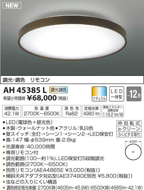 LED42.1W|¡üLED¡ÊÅŵ忧¡ÜÃë¸÷¿§¡Ë|¡üÌÚÀ½¡¦¥¦¥©¡¼¥ë¥Ê¥Ã¥È¿§|¡ü¥¢¥¯¥ê¥ë¡§ÆýÇò¿§|¡üÊÉ¥¹¥¤¥Ã¥Á¡§Á´Åô¢ª¥·¡¼¥ó1¢ª¥·¡¼¥ó2¢ªLEDÊݰÂÅô|¡É¡ü¹â-147 Éý-¦Õ639mm ½Å-2.8kg¡É|¡ü¾ÃÈñÅÅÎÏ:42.1W|¡ü¿§²¹ÅÙ:2700K¡Á6500K|¡ü±é¿§À:Ra82|¡É¡üÄê³Ê¸÷«:4¡¤980 lm¡É|¡É¡ü¸ÇÍ¥¨¥Í¥ë¥®¡¼¾ÃÈñ¸úΨ:118.2 lm/W¡É|¡É¡ü¸÷¸»¼÷Ì¿¡§40¡¤000»þ´Ö¡É|¡üÀìÍÑ¥ê¥â¥³¥óÉÕ|¡üÄ´¸÷ÈϰϡÊ100¡ÁÌó1¡ó¡Ë¡¢LEDÊݰÂÅô5Ãʳ¬Ä´¸÷|¡üÄ´¿§ÈϰϡÊ2700K¡Á6500K¡Ë|¡É¡üÊÌÇä¥ê¥â¥³¥ó¡ÌAE44865E ¡ï3¡¤000¡ÊÀÇÈ´¡Ë¡Í¡É|¡É¡ü·¹¼ÐÅ·°æ¥¢¥À¥×¥¿Âбþ·¿¡ÌAE37490EÊÌÇä ¡ï5¡¤800¡ÊÀÇÈ´¡Ë¡Í¡É|¡üÃî¤Ê¤É¤ÎÆþ¤ê¤Ë¤¯¤¤¹½Â¤|¡üÄ´¿§»þÄê³Ê¸÷«ÃÍ¡§2700K»þ¡Ê4605lm¡¦45.9W¡Ë/6500K»þ¡Ê4665lm¡¦42.1W¡Ë ¡Á12¾ö