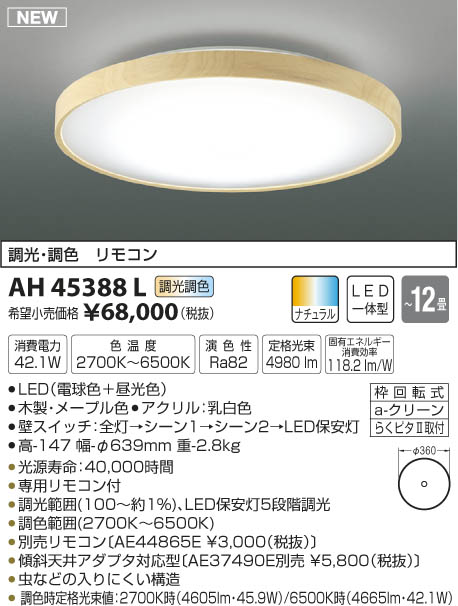 LED42.1W|¡üLED¡ÊÅŵ忧¡ÜÃë¸÷¿§¡Ë|¡üÌÚÀ½¡¦¥á¡¼¥×¥ë¿§|¡ü¥¢¥¯¥ê¥ë¡§ÆýÇò¿§|¡üÊÉ¥¹¥¤¥Ã¥Á¡§Á´Åô¢ª¥·¡¼¥ó1¢ª¥·¡¼¥ó2¢ªLEDÊݰÂÅô|¡É¡ü¹â-147 Éý-¦Õ639mm ½Å-2.8kg¡É|¡ü¾ÃÈñÅÅÎÏ:42.1W|¡ü¿§²¹ÅÙ:2700K¡Á6500K|¡ü±é¿§À:Ra82|¡É¡üÄê³Ê¸÷«:4¡¤980 lm¡É|¡É¡ü¸ÇÍ¥¨¥Í¥ë¥®¡¼¾ÃÈñ¸úΨ:118.2 lm/W¡É|¡É¡ü¸÷¸»¼÷Ì¿¡§40¡¤000»þ´Ö¡É|¡üÀìÍÑ¥ê¥â¥³¥óÉÕ|¡üÄ´¸÷ÈϰϡÊ100¡ÁÌó1¡ó¡Ë¡¢LEDÊݰÂÅô5Ãʳ¬Ä´¸÷|¡üÄ´¿§ÈϰϡÊ2700K¡Á6500K¡Ë|¡É¡üÊÌÇä¥ê¥â¥³¥ó¡ÌAE44865E ¡ï3¡¤000¡ÊÀÇÈ´¡Ë¡Í¡É|¡É¡ü·¹¼ÐÅ·°æ¥¢¥À¥×¥¿Âбþ·¿¡ÌAE37490EÊÌÇä ¡ï5¡¤800¡ÊÀÇÈ´¡Ë¡Í¡É|¡üÃî¤Ê¤É¤ÎÆþ¤ê¤Ë¤¯¤¤¹½Â¤|¡üÄ´¿§»þÄê³Ê¸÷«ÃÍ¡§2700K»þ¡Ê4605lm¡¦45.9W¡Ë/6500K»þ¡Ê4665lm¡¦42.1W¡Ë ¡Á12¾ö