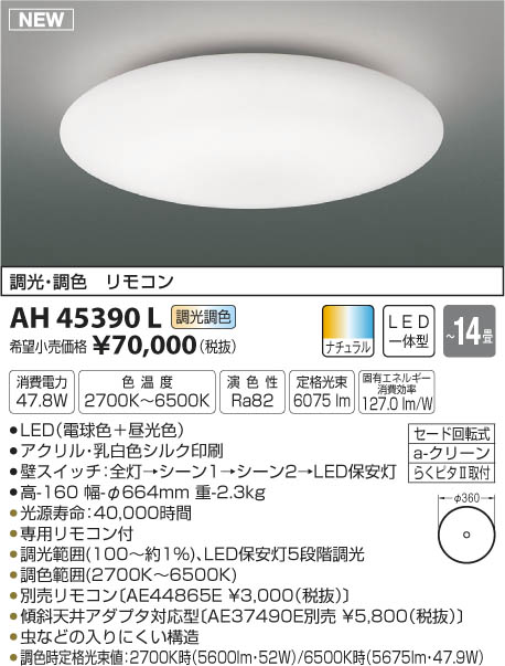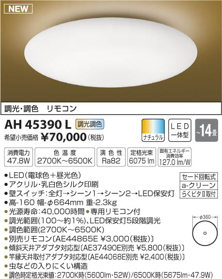 LED47.8W|¡üLED¡ÊÅŵ忧¡ÜÃë¸÷¿§¡Ë|¡ü¥¢¥¯¥ê¥ë¡¦ÆýÇò¿§¥·¥ë¥¯°õºþ|¡üÊÉ¥¹¥¤¥Ã¥Á¡§Á´Åô¢ª¥·¡¼¥ó1¢ª¥·¡¼¥ó2¢ªLEDÊݰÂÅô|¡É¡ü¹â-160 Éý-¦Õ664mm ½Å-2.3kg¡É|¡ü¾ÃÈñÅÅÎÏ:47.8W|¡ü¿§²¹ÅÙ:2700K¡Á6500K|¡ü±é¿§À:Ra82|¡É¡üÄê³Ê¸÷«:6¡¤075 lm¡É|¡É¡ü¸ÇÍ¥¨¥Í¥ë¥®¡¼¾ÃÈñ¸úΨ:127.0 lm/W¡É|¡É¡ü¸÷¸»¼÷Ì¿¡§40¡¤000»þ´Ö¡É|¡üÀìÍÑ¥ê¥â¥³¥óÉÕ|¡üÄ´¸÷ÈϰϡÊ100¡ÁÌó1¡ó¡Ë¡¢LEDÊݰÂÅô5Ãʳ¬Ä´¸÷|¡üÄ´¿§ÈϰϡÊ2700K¡Á6500K¡Ë|¡É¡üÊÌÇä¥ê¥â¥³¥ó¡ÌAE44865E ¡ï3¡¤000¡ÊÀÇÈ´¡Ë¡Í¡É|¡É¡ü·¹¼ÐÅ·°æ¥¢¥À¥×¥¿Âбþ·¿¡ÌAE37490EÊÌÇä ¡ï5¡¤800¡ÊÀÇÈ´¡Ë¡Í¡É|¡üÃî¤Ê¤É¤ÎÆþ¤ê¤Ë¤¯¤¤¹½Â¤|¡üÄ´¿§»þÄê³Ê¸÷«ÃÍ¡§2700K»þ¡Ê5600lm¡¦52W¡Ë/6500K»þ¡Ê5675lm¡¦47.9W¡Ë ¡Á14¾ö